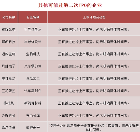 此外,还有多家A股上市公司如宁德时代、恒瑞医药等也已发布公告,拟赴香港上市。据不完全统计,据说有30多家已经确定或者计划要到香港二次上市。